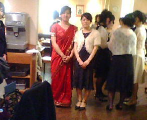 謝恩会では他にインド人はいないので、ちょっと着付けがあやしくてもチェックされないし、と思って着てみました。