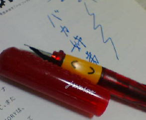 軸がプラスティックで、一見おもちゃみたいなカジュアルな雰囲気。しかし持つと、気持ちいいくらいしっくりと指になじむ。これはいいです。しかも万年筆としてはかなり求めやすいお値段だし。
